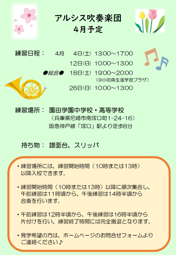 【お知らせ~4月の練習日程について~】